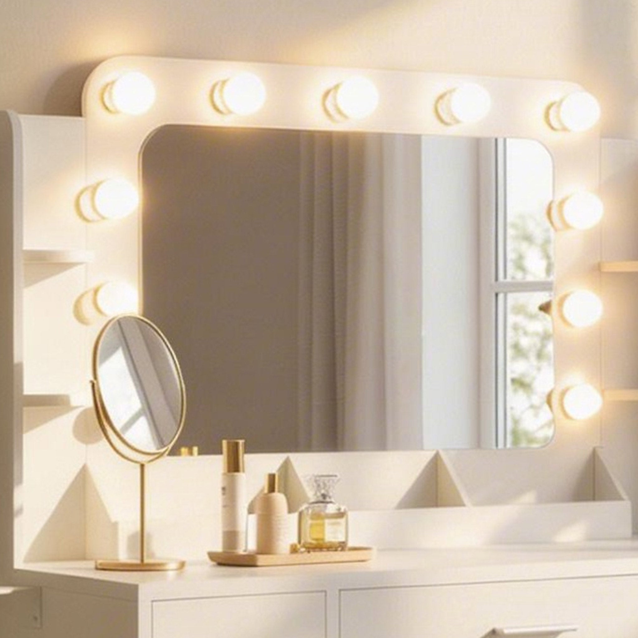 Step out with certainty. Our professional lighted bulb mirrors mimic natural sunlight, ensuring a flawless application from every angle. From a warm morning glow to crisp daylight, find the perfect setting for your best self.