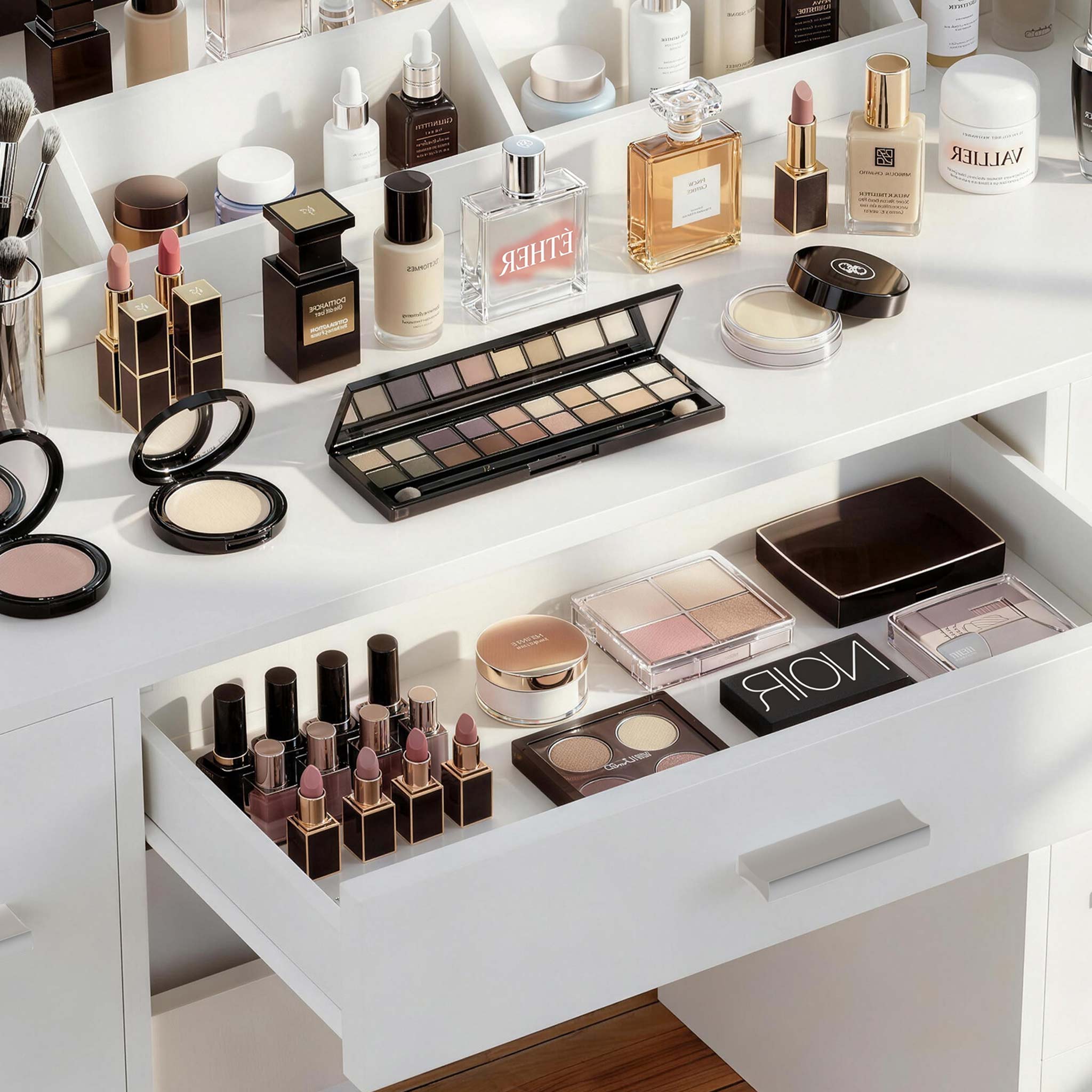 Eliminate the morning scramble. Our intuitive, deep-tier drawers assign a specific home to every brush and palette, turning chaos into flow and bringing effortless order to your beauty essentials.